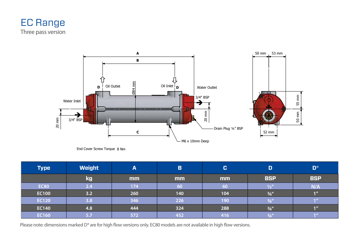 Bowman, Oliekøler EC 140 3/4" Olie, Vand 32mm, 16,0 kW, 444 mm, Ø 87 mm
