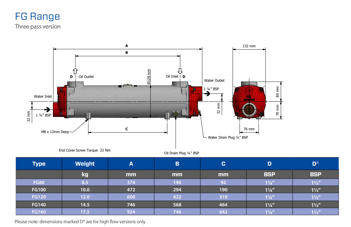 Bowman, Oliekøler FG100, 1 1/4", Vandtilgang 58mm, 33 kW, 472 mm