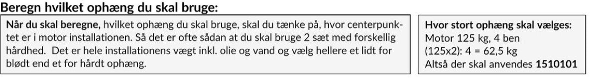 For at beregne det rette ophæng til din motorinstallation, overvej centerpunktet og den samlede vægt inklusiv olie og vand. Det anbefales ofte at vælge to sæt med forskellige hårdheder for optimal balance. Besøg boatlab.dk for mere information om motorophæng og tilbehør til din båd.