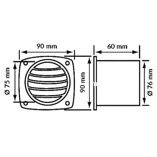 Plastikventil med studs 3" - Sort, Ø: 75 mm, 90 mm x 90 mm