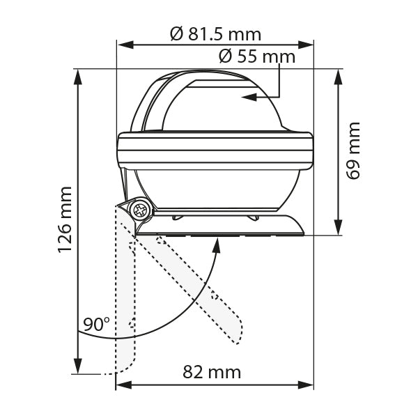 Er med sort hus & kompasrose. Enkel montering med vinklingsbart beslag.