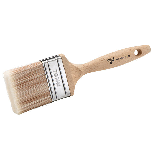 ProSoft flad pensel er velegnet til de fleste overflader, herunder træ, metal og vægge. Den er særligt god til træværk, hvor den flade form giver god kontrol.