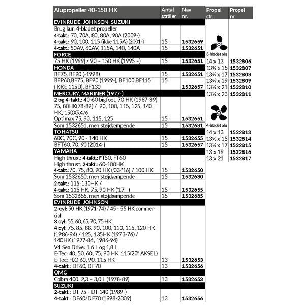 - EVINRUDE, JOHNSON, SUZUKI: 3-bladet propeller