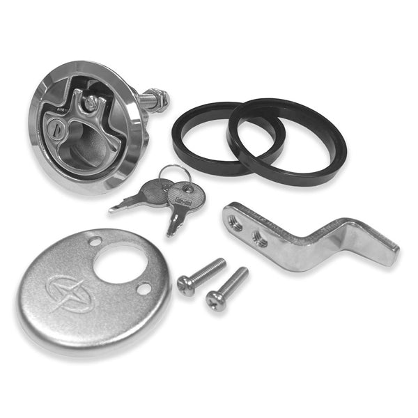 Beslaget kan anvendes på alle typer dæksluger, fra mindre ankerbokse til større maskinrumsluger. Det fjederbelastede håndtag sikrer en kompression på 4 mm, når det er foldet ned, hvilket giver en vandtæt og vibrationsfri lukning. For at beskytte lågen mod skader, kan håndtaget sænkes, når beslaget er åbent.