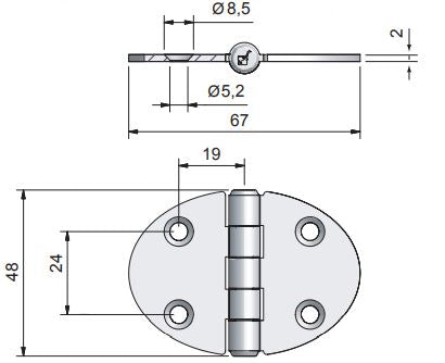 Roca, Hængsel elip RF, AISI 316, 67x48mm