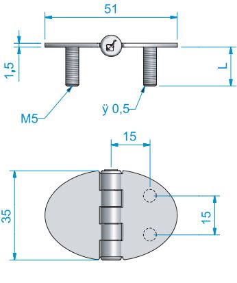 Roca, Hængsel ovalt m/fast M5 skruer AISI 316, 51x35 mm