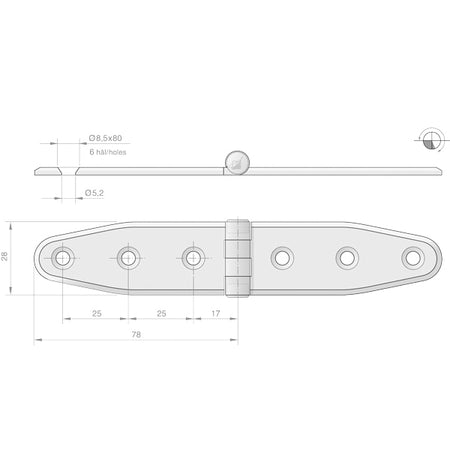 Fremstillet af rustfrit stål AISI 304, er dette hængsel modstandsdygtigt over for korrosion og slid, hvilket gør det ideelt til både indendørs og udendørs brug. Med en bredde på 156 mm og en højde på 30 mm, passer det perfekt til forskellige installationsbehov.