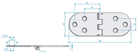 Roca, Hængsel RF 160x60mm, omvendt, AISI 316
