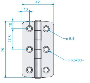 Roca, Hængsel RF, AISI 316, 42x75mm