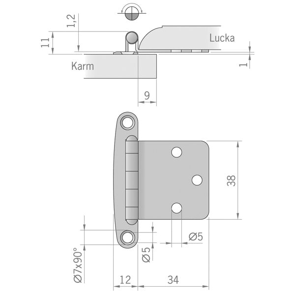 Roca, Hængsel RF, 46x38mm, Rustfrit stål AISI 304