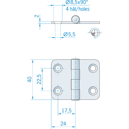Roca, Hængsel RF, 48x40mm, AISI 316