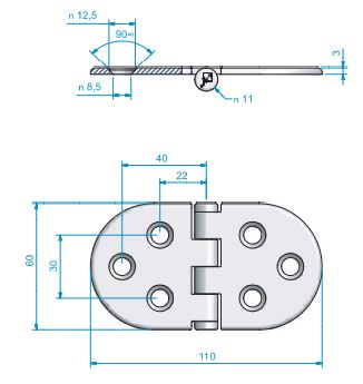 Roca, Hængsel RF, 60x110mm, AISI 316