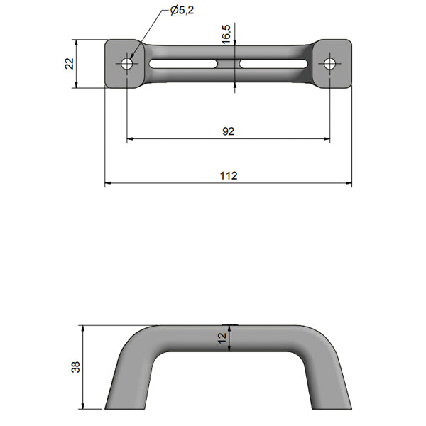 Roca, Håndtag plast grå, 22 mm, Ø 5,2 mm, 92 mm afstand, 112 mm længde
