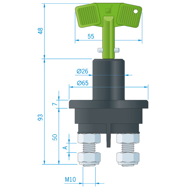 Roca, Hovedafbryder gastæt m/aftagelig nøgle, 24V / 250 Amp, ISO 8846