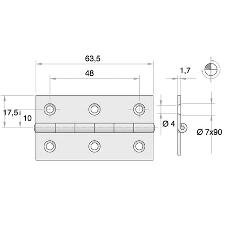 Roca, Kanthængsel forkromet, 35x63,5mm