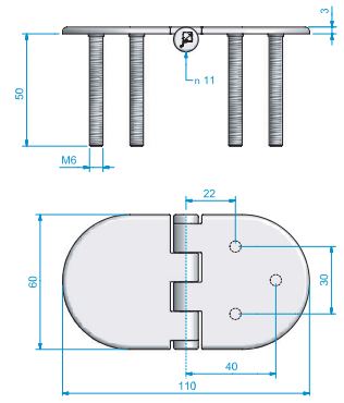 Roca, Kraftig hængsel RF m/fast M6 skruer, AISI 316, 60x110mm