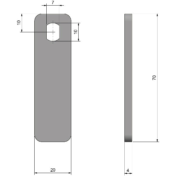 Roca, Rigel til Dørkbeslag RF, Lige, 70,0 mm, AISI 316