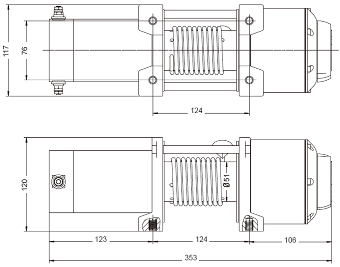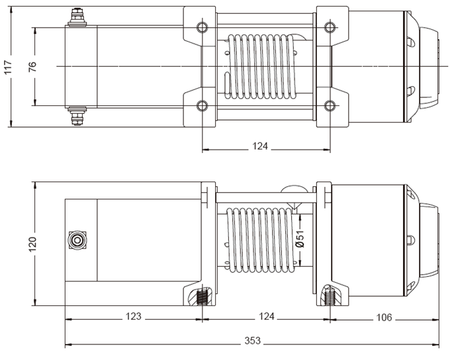 Rock, El-trailerspil RP3500 m/wire 3,1hk (2,3kw) 1589 kg, IP67, med fjernbetjening m/kabel