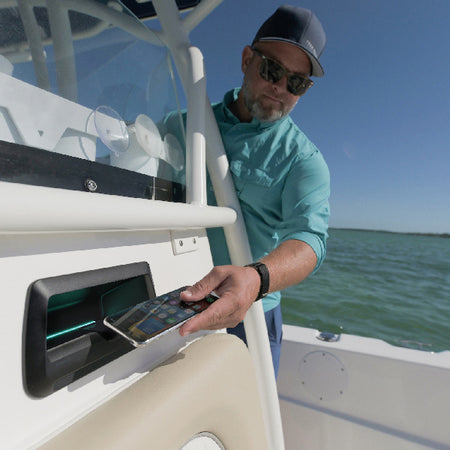 Med ROKK Cove Telefonluge får du en smart og praktisk løsning til opladning af din telefon, mens du er på vandet. Dette innovative produkt kombinerer funktionalitet med et stilrent design, der passer perfekt til både moderne og klassiske bådinteriører. Den IPX6 vandtætte konstruktion sikrer, at din enhed forbliver beskyttet mod vand og fugt, hvilket gør den ideel til udendørs brug.