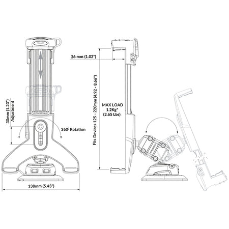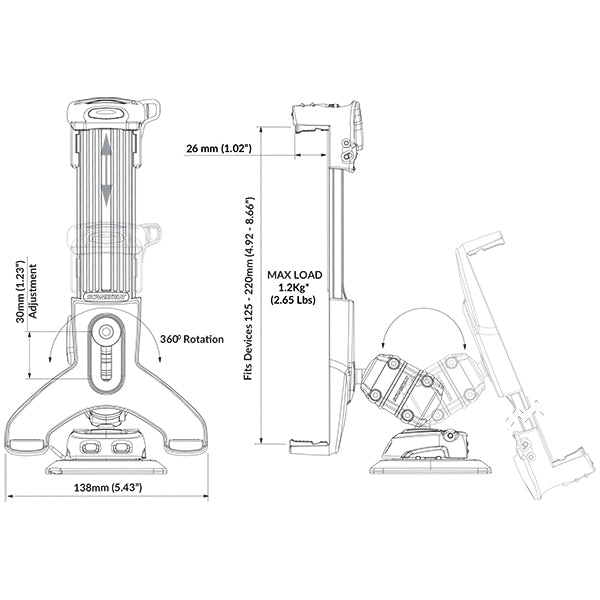 Den justerbare tabletklemme sikrer, at både mini- og fuldstørrelses-tablets kan monteres sikkert. ROKK monteringssystemet er ideelt til brug på både, hvor plads og stabilitet er afgørende.