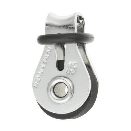 Ronstan, Kugleleje enkelblok med bøjle og o-ring, serie 15, 120 kg arbejdsbelastning, 550 kg brudstyrke, 5 mm max line, 15 mm skivediameter, 7 g vægt