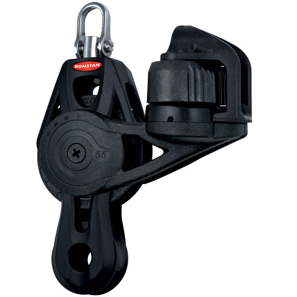 Ronstan, Orbit Violinblok svirvel med hundsvot & frølår, serie 55, 500 kg, 1000 kg brudstyrke, 10 mm max tov diameter, 95 g