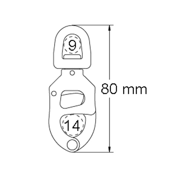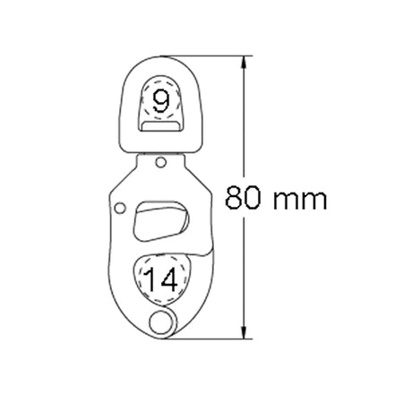 Ronstan, Triggersnap Skødekrog Lille Øje, Brudstyrke 2000 kg, 14/9 mm, 80 mm, 60 g