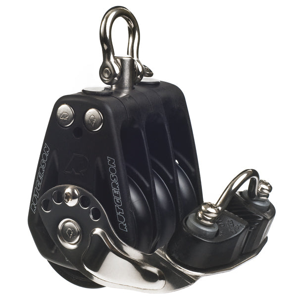 Denne trippelblok med frølår bruges i udvekslings- og trimopgaver, hvor du har brug for både høj mekanisk fordel og mulighed for hurtig fastlåsning af linen. Den henvender sig til sejlere, der foretager hyppige justeringer og ønsker en kompakt løsning med både udveksling og låsefunktion. Trippelblokkens opbygning giver et kontrolleret og stabilt træk i systemet.