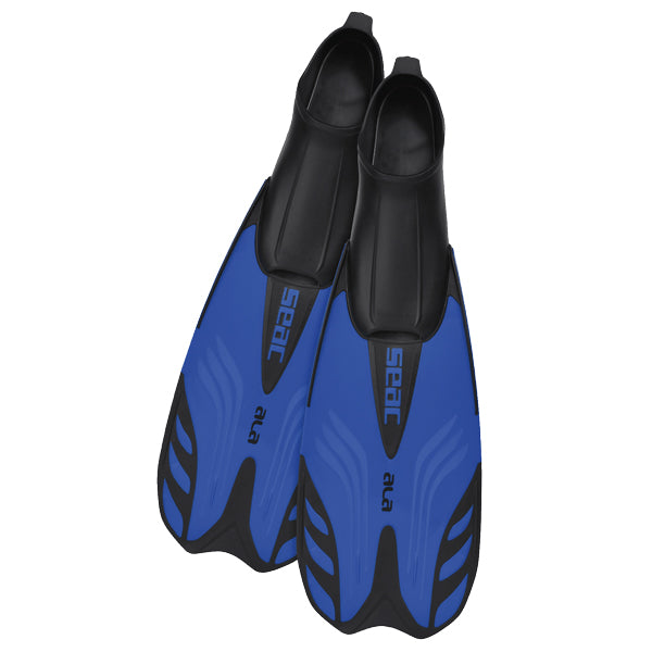 Seac Ala svømmefødderne er en let og effektiv helfodsmodel udviklet til snorkling, hvor komfort og fremdrift er i fokus. Den bløde fodlomme i termoplastisk gummi giver en stabil og behagelig pasform, mens det fleksible finneblad i dobbeltmateriale leverer effektiv fremdrift med minimal indsats. Undersidens noprede struktur giver et sikkert fodfæste, og konstruktionen sikrer let bevægelighed i vandet.Seac Ala svømmefødderne er konstrueret som en let og effektiv helfodsfinne, der kombinerer fleksibilitet, lav vægt og høj fremdrift til snorkling. Finnebladet er fremstillet i en dobbeltmateriale‑struktur, der øger effektiviteten i hvert spark og sikrer markant fremdrift uden unødvendig energiforbrug. Den reducerede vægt gør modellen velegnet til længere tid i vandet, hvor belastningen på fod og ankel minimeres. Fodlommen er udført i blødt termoplastisk gummi, som omslutter foden sikkert og komfortabelt, uden at klemme, og den åbne tåsektion giver naturlig bevægelsesfrihed. På undersiden findes en nopret skridsikker struktur, der sikrer greb på våde og glatte underlag, særligt ved ind- og udstigning fra vandet. Finnebladets bøjelighed understøtter en jævn og kontrolleret bevægelse gennem vandet, hvilket optimerer brugerens udbytte af hvert spark. Seac Ala er designet til brugere, der ønsker en funktionel og teknisk velfungerende finne, hvor stabilitet, lethed og effektiv fremdrift prioriteres.