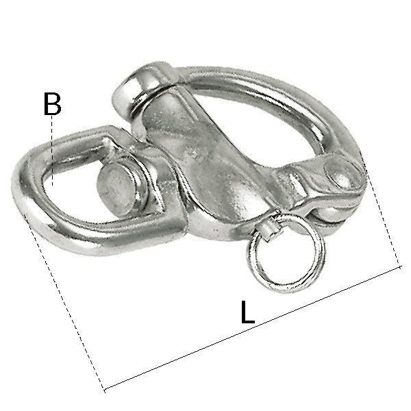 1852, Skødekrog med svirvel 70mm, AISI 316, 1100 kg brudstyrke, 12 mm B