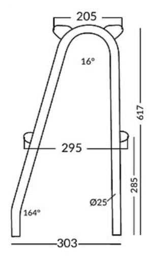 1852, Søgelænderbøjle RF 613mm, Ø25mm AISI 316