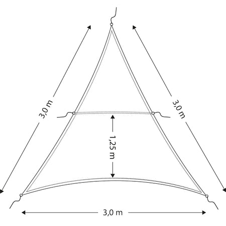 Solsejl/presenning trekantet 3m, 600D Polyester, UV 5.0, 100% vandtæt, Hvid