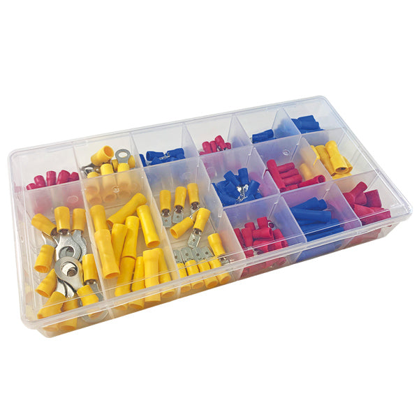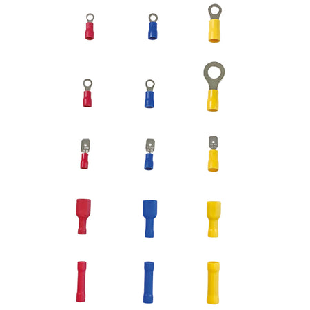 Indeholder: Ringstik, isoleret fladstik, ledningssamler og fladt hanstik.