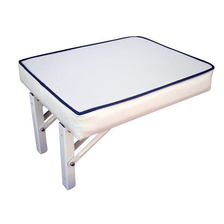 Dette klapsæde er udstyret med to hvide pulverlakerede foldebeslag, der sikrer stabilitet og holdbarhed. Det kompakte mål gør det let at opbevare, når det ikke er i brug, hvilket gør det til et praktisk valg til både hjemmet og båden.