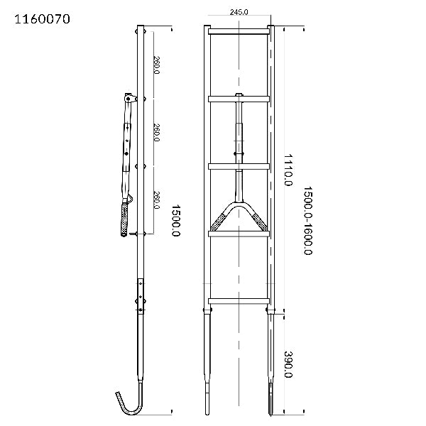 Rustfri stævnstige, 4 trin, 850 mm, 300 mm, Min. 1180 mm / Max. 1280 mm