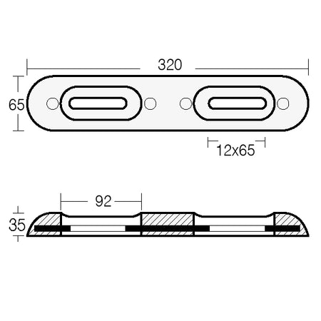 - Dimensioner: 320 mm x 65 mm x 35 mm