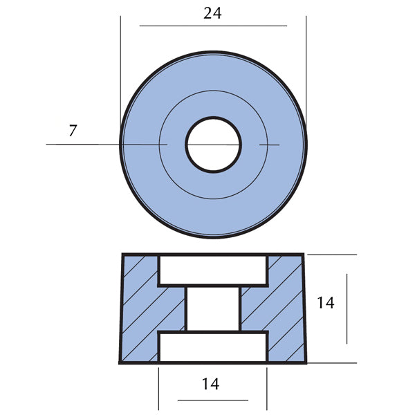 Tecnoseal, Zinkanode Honda 20-225 hk, Ø 24 mm, Hul Ø 6,5 mm, Højde 14 mm, Original nr. 12155-ZV5-000