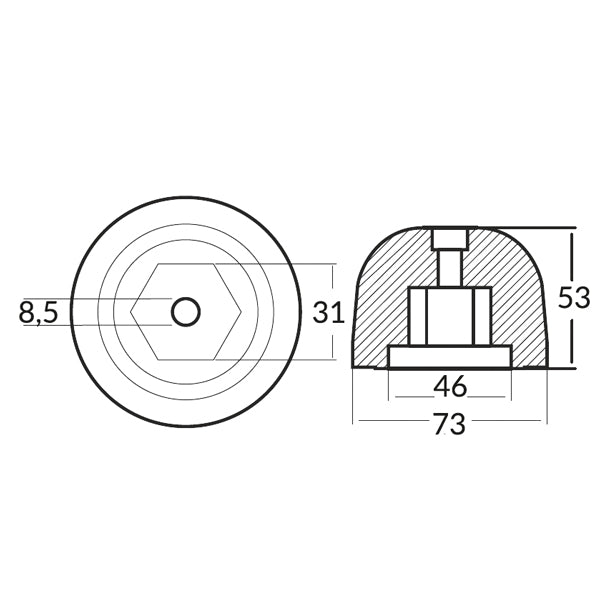 Tecnoseal, Zinkanode til Bovpropeller Sidepower/Sleipner, 501180