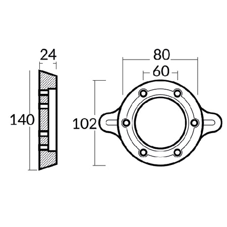 Tecnoseal, Zinkanode Sole Sejldrev 102mm - 24mm tykkelse, 80mm hulafstand, 140mm bredde