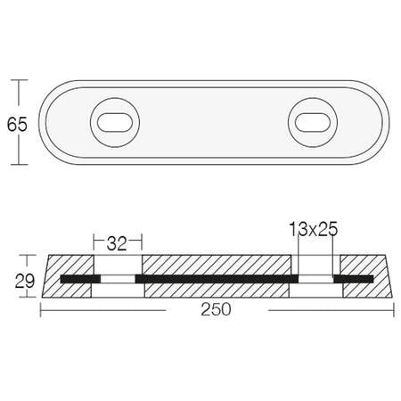 Tecnoseal, Zinkanode Vetus, 29x63x250 mm, 140 mm hulafstand