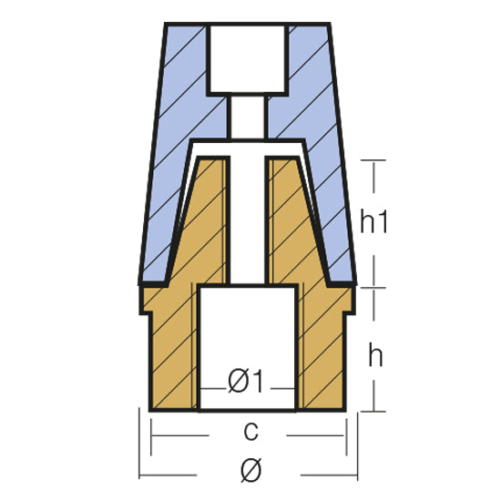 Tecnoseal, Zinkmøtrik med 16mm gevind, 22-25mm, 30mm c, 20mm h, 18mm h1, Ø1: 16x1,5mm