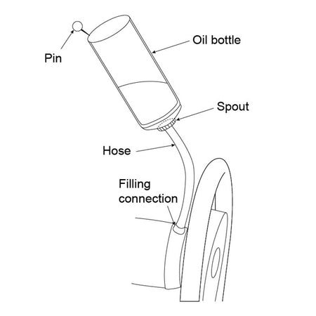 Påfyldningskittet gør det enkelt at udføre vedligeholdelse af din ratpumpe med en simpel og gennemtænkt proces. Ved at følge de medfølgende instruktioner kan du nemt fjerne pumpehætten, montere de medfølgende fittings og tilslutte olieflasken for at sikre en præcis påfyldning uden spild eller luftbobler.