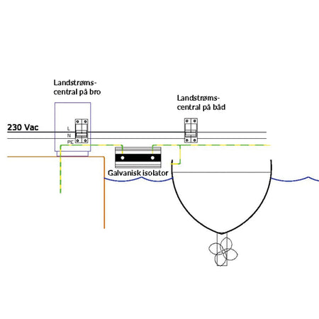 Isolatoren monteres på jordkablet og opsamler lavvoltsudsving, hvilket sikrer, at kun den nødvendige jordforbindelse tillades. Dette er især vigtigt, hvis din båd har en varmtvandsbeholder eller andre apparater, der kræver jordforbindelse.