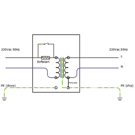 Med en kapacitet på 3600 Watt og en indbygget softstarter, tilbyder denne transformator både step up og step down funktionalitet (120VAC / 230VAC). Fase, nul og jord er alle isoleret, hvilket sikrer en sikker og pålidelig drift.
